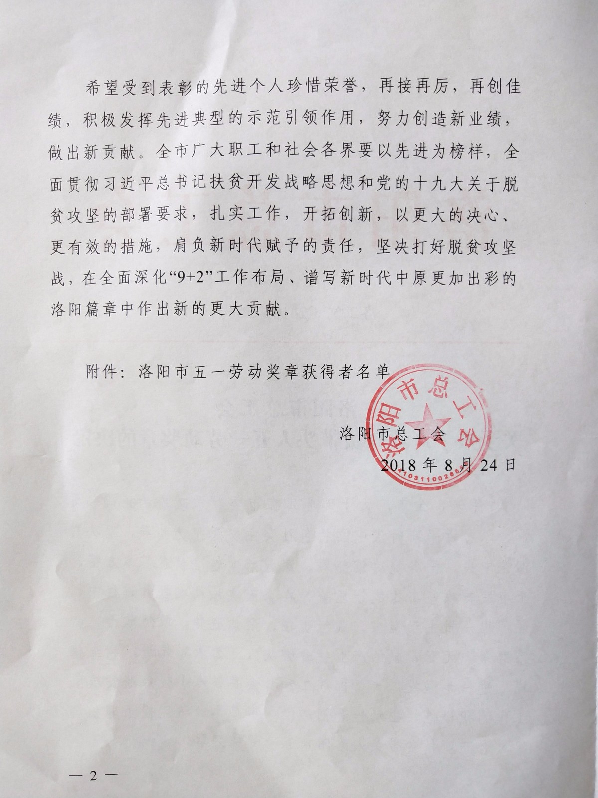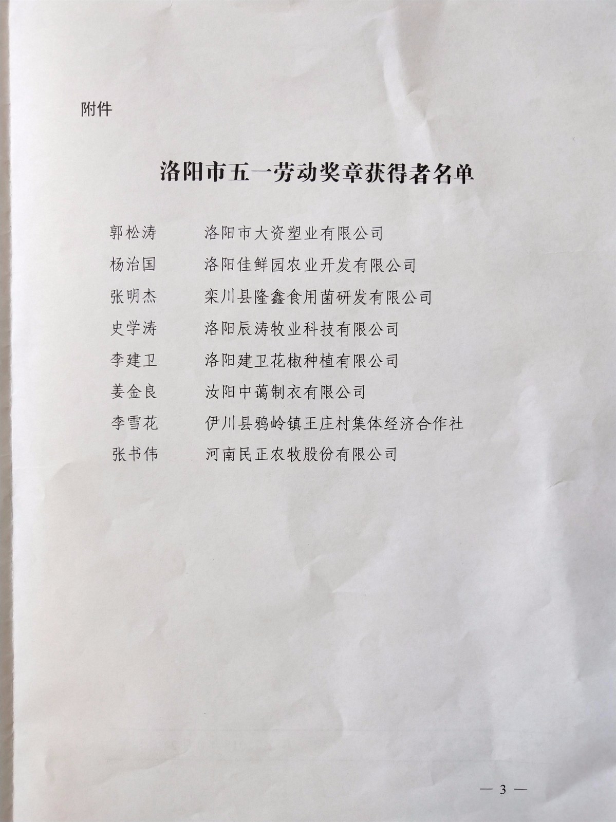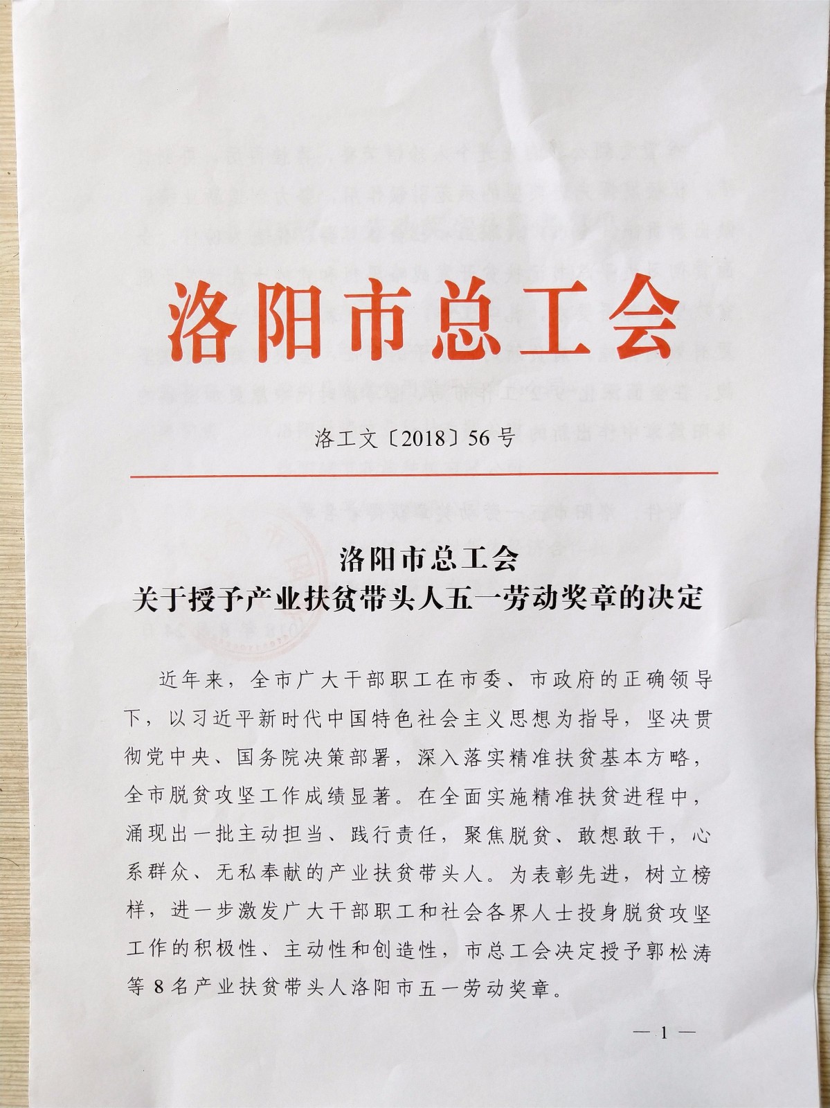 《洛陽市總工會關(guān)于授予產(chǎn)業(yè)扶貧帶頭人五一勞動獎?wù)碌臎Q定》(洛工文﹝2018﹞56號)文件通知:河南民正農(nóng)牧股份有限公司張書偉董事長被洛陽市總工會授予“洛陽市五一勞動獎?wù)隆薄?/span>